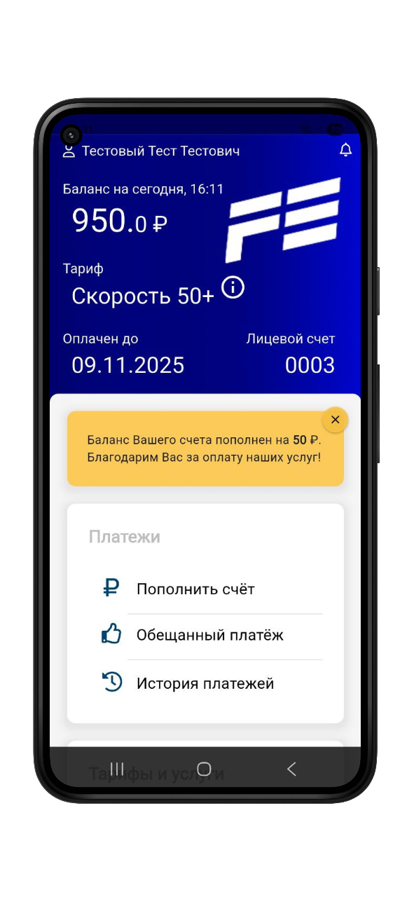 - Пополнить счёт и контролировать расходы;